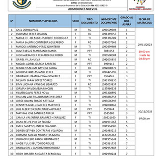Apreciado padre de familia lo invitamos a verificar el día que ha sido citado por la Institución Educativa para formalizar el proceso de matrícula académica de su hijo(a), recuerde que solo debe asistir un (1) acudiente responsable